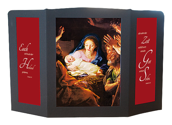 Eine stimmungsvolle Krippenszene zum Aufstellen aus Papier. Für Ihre Sicherheit bitte eine elektrische Lichtquelle verwenden.