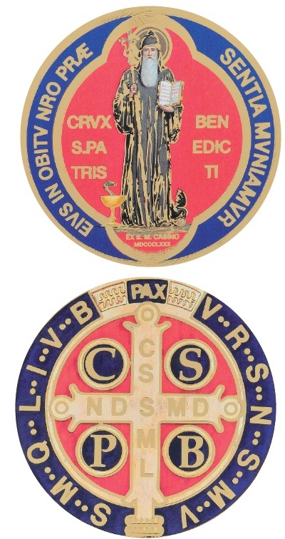 Aufkleber der Benediktus-Medaille (Vorder- und Rücksseite sind einzeln anbringbar)