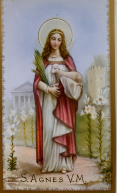 Sammelbildchen mit der Abbildung der hl. Agnes, 3 Stück pro Päckchen sortenrein.