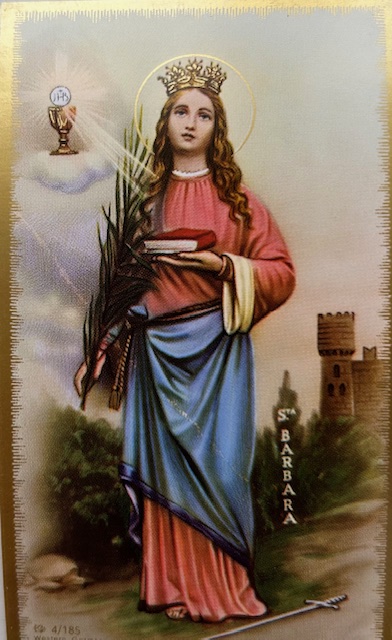 Sammelbildchen mit der Abbildung der hl. Barbara, 3 Stück pro Päckchen sortenrein.