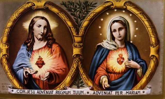 Sammelbildchen mit der Abbildung der Vereinten Herzen, 3 Stück pro Päckchen sortenrein.