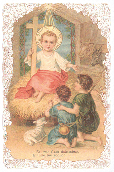 Darstellung des Jesuleins auf Stroh mit Kindern.